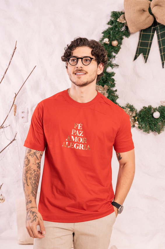Camiseta Masculina com modelagem tradicional de gola'' O''