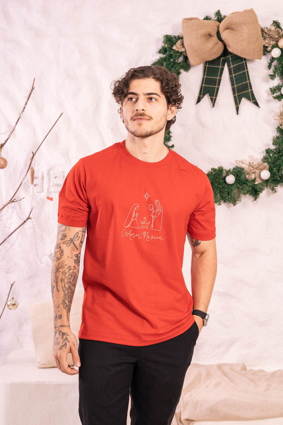 Camiseta Masculina com modelagem tradicional de gola'' O''