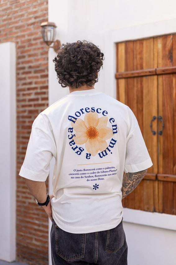 Camiseta Over com modelagem tradicional de camiseta Gola Alta em Ribana Canelada e costura ombro a ombro.