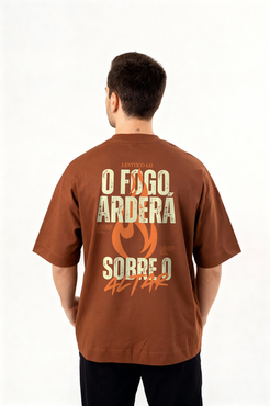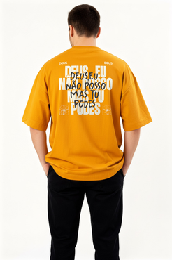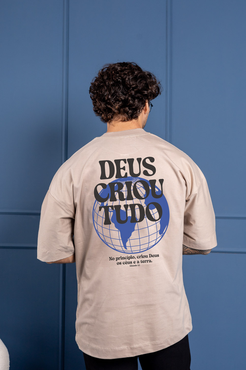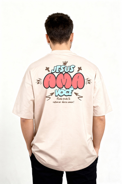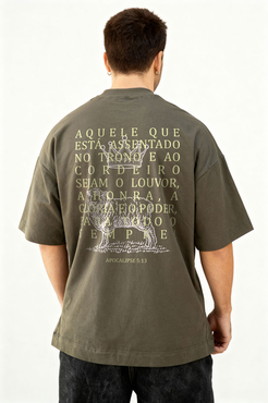 Camiseta Over com modelagem tradicional de camiseta Gola Alta em Ribana Canelada e costura ombro a ombro.