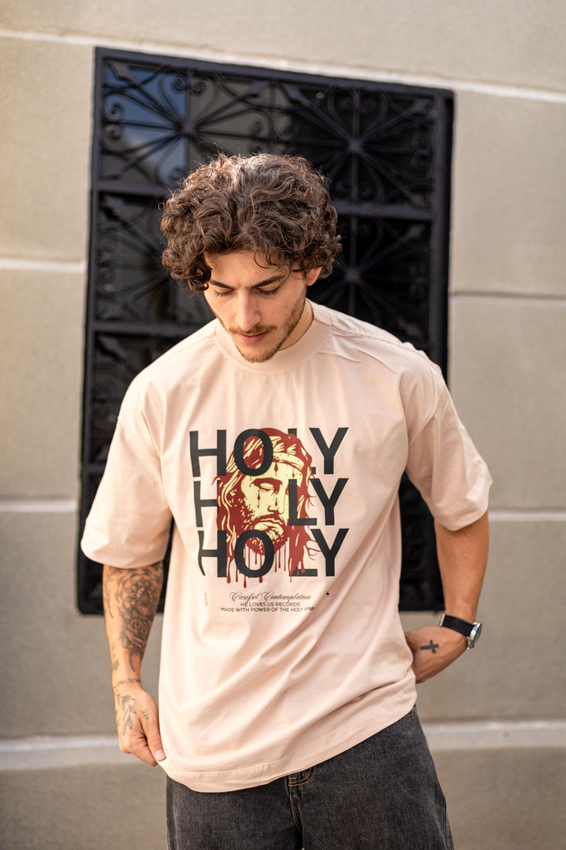 Camiseta Over com modelagem tradicional de camiseta Gola Alta em Ribana Canelada e costura ombro a ombro.