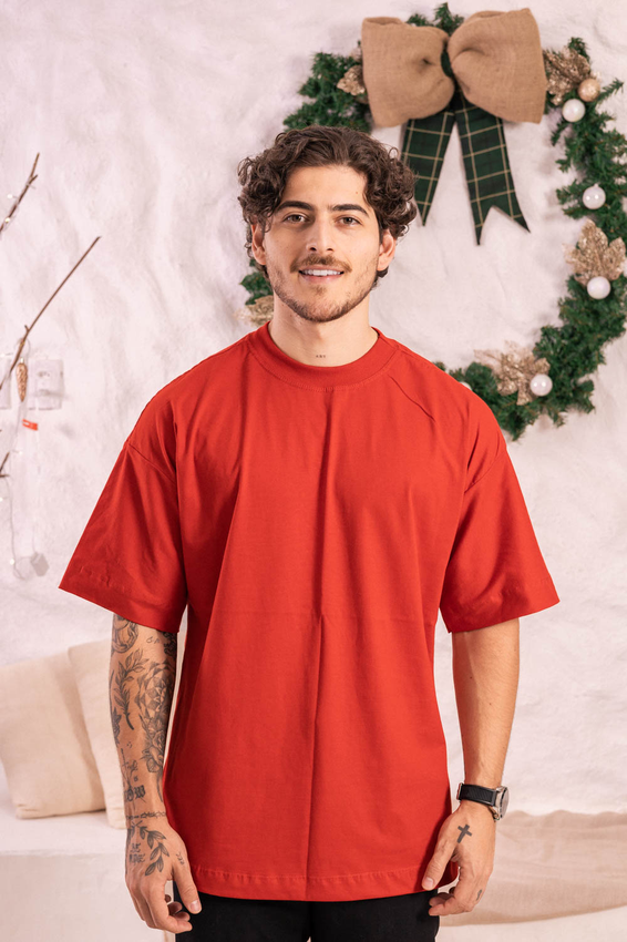 Camiseta Over com modelagem tradicional de camiseta Gola Alta em Ribana Canelada e costura ombro a ombro.