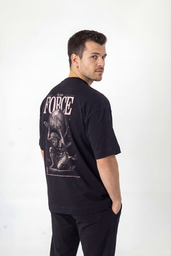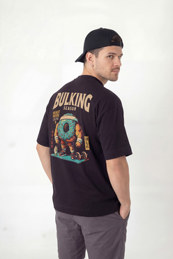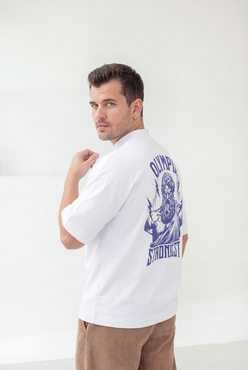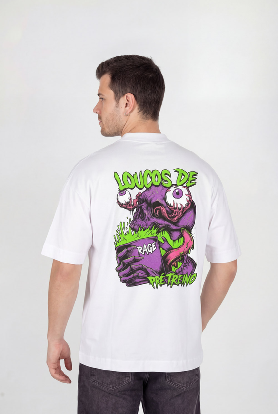 Camiseta Over com modelagem tradicional de camiseta Gola Alta em Ribana Canelada e costura ombro a ombro.