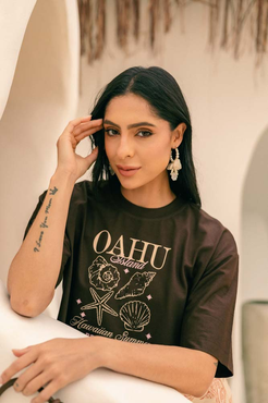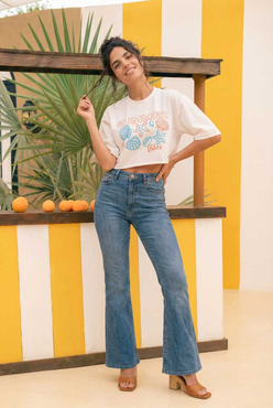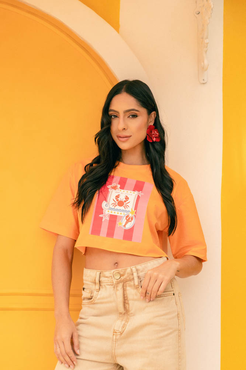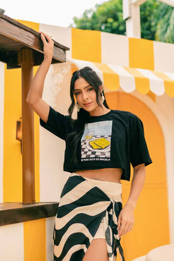Cropped com modelagem tradicional de camiseta gola'' O''