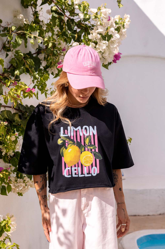 Cropped com modelagem tradicional de camiseta gola'' O''