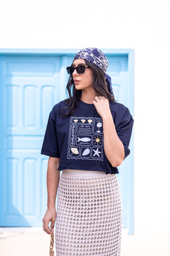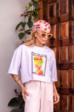 Cropped com modelagem tradicional de camiseta gola'' O''
