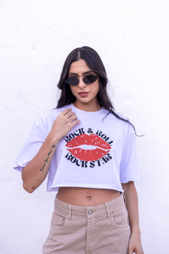 Cropped com modelagem tradicional de camiseta gola'' O''