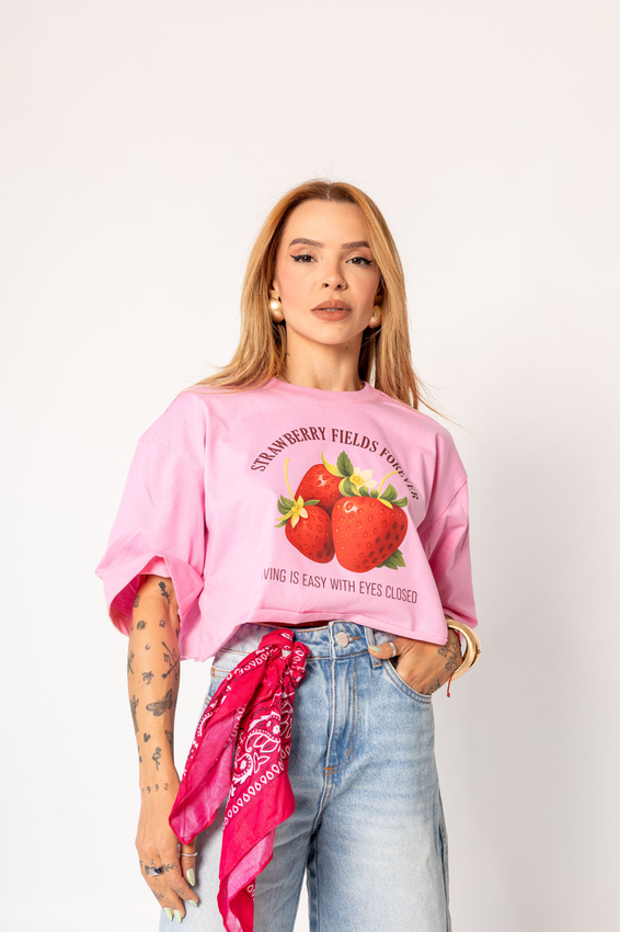 Cropped com modelagem tradicional de camiseta gola'' O''