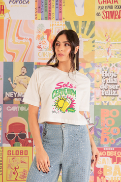 Cropped com modelagem tradicional de camiseta gola'' O''