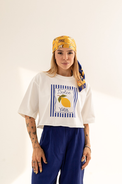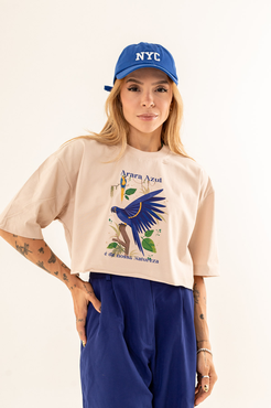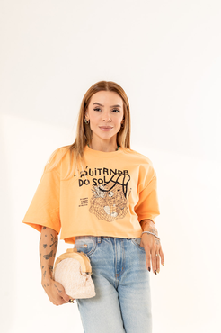 Cropped com modelagem tradicional de camiseta gola'' O''