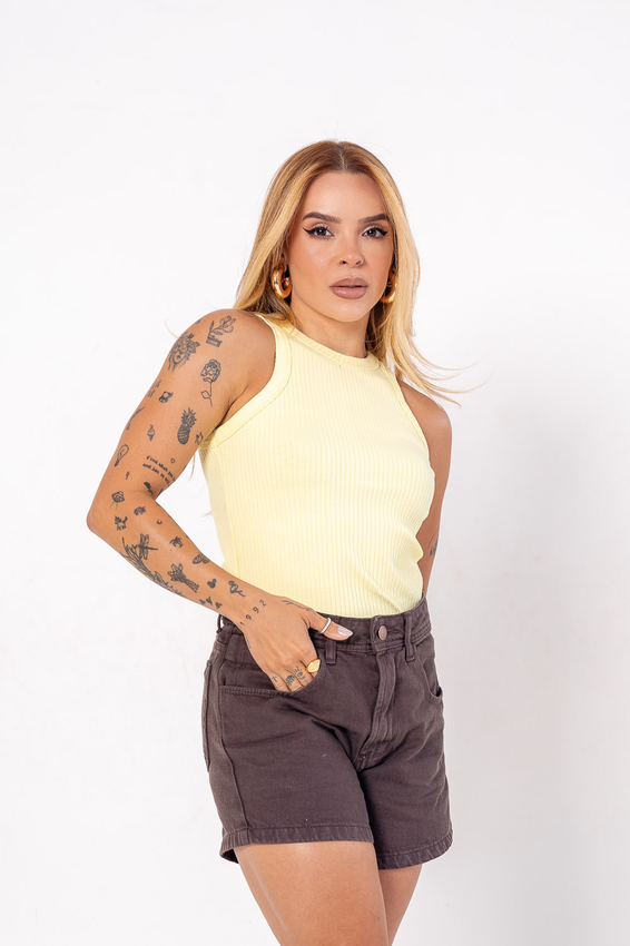 Regata canelada SOHO com modelagem tradicional de gola'' O''