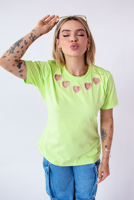 Tshirt com modelagem tradicional de camiseta gola''O'' com ribana e costura ombro a ombro.