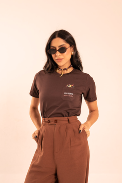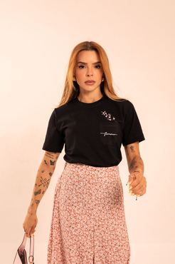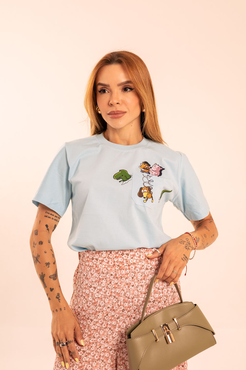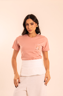 Tshirt com modelagem tradicional de camiseta gola''O'' com ribana e costura ombro a ombro.