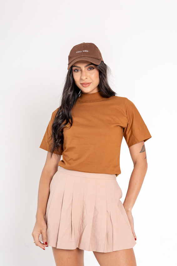 Tshirt com modelagem tradicional de camiseta gola''O'' com ribana e costura ombro a ombro.