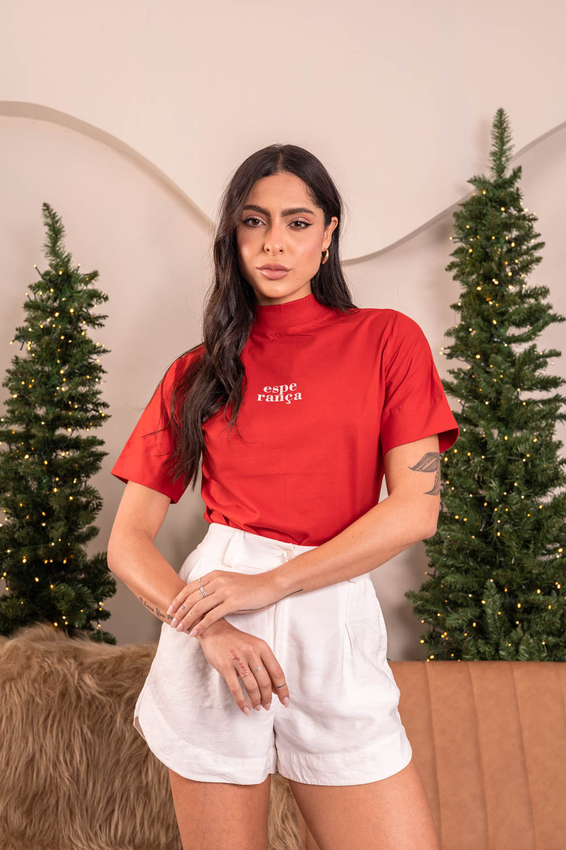 Tshirt com modelagem tradicional de camiseta gola''O'' com ribana e costura ombro a ombro.
