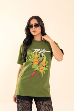 Tshirt com modelagem tradicional de camiseta gola''O'' com ribana e costura ombro a ombro.