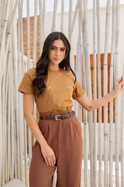 Tshirt com modelagem tradicional de camiseta gola''O''