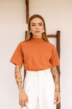Tshirt com modelagem tradicional de camiseta gola''O'' com Gola em Ribana Canelada e costura ombro a ombro.