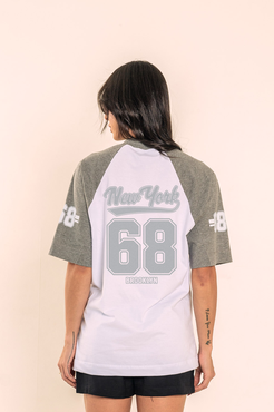 Tshirt com modelagem tradicional de camiseta gola''O'' com ribana e costura ombro a ombro.