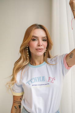 Tshirt Bicolor Tenha Fé Porque Vivemos Por Fé