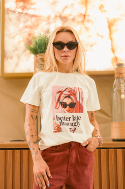Tshirt Mulher Lendo Jornal Better Late Than Ugly
