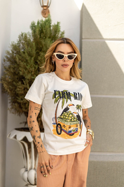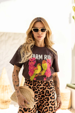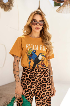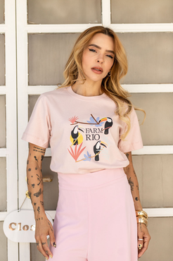 Tshirt Farm Rio Pássaros Bananas Rosa