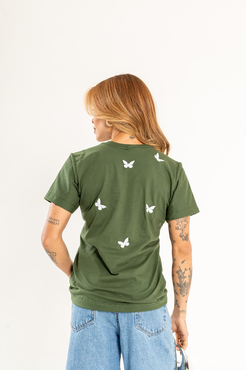 Tshirt Bordada Borboletas Brancas Frente e Costas