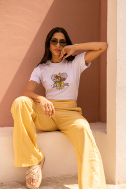 Tshirt Bordada Florzinhas Vermelhas Mangas