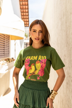 Tshirt Passarinho Flores Farm Rio Aplicação