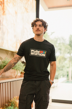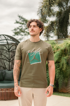 Camiseta Masculina com modelagem tradicional de gola'' O''