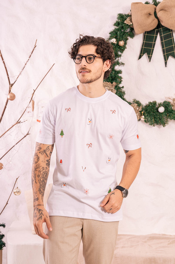 Camiseta Masculina com modelagem tradicional de gola'' O''