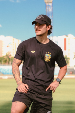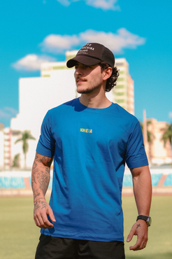 Camiseta Masculina com modelagem tradicional de gola'' O''