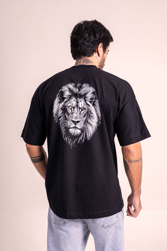 Camiseta Over com modelagem tradicional de camiseta Gola Alta em Ribana Canelada e costura ombro a ombro.