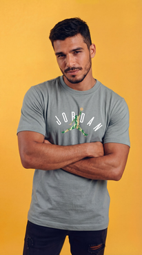 Camiseta Over com modelagem tradicional de camiseta Gola Alta em Ribana Canelada e costura ombro a ombro.