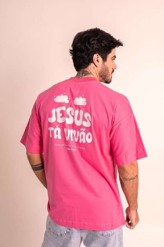 Camiseta Over com modelagem tradicional de camiseta Gola Alta em Ribana Canelada e costura ombro a ombro.