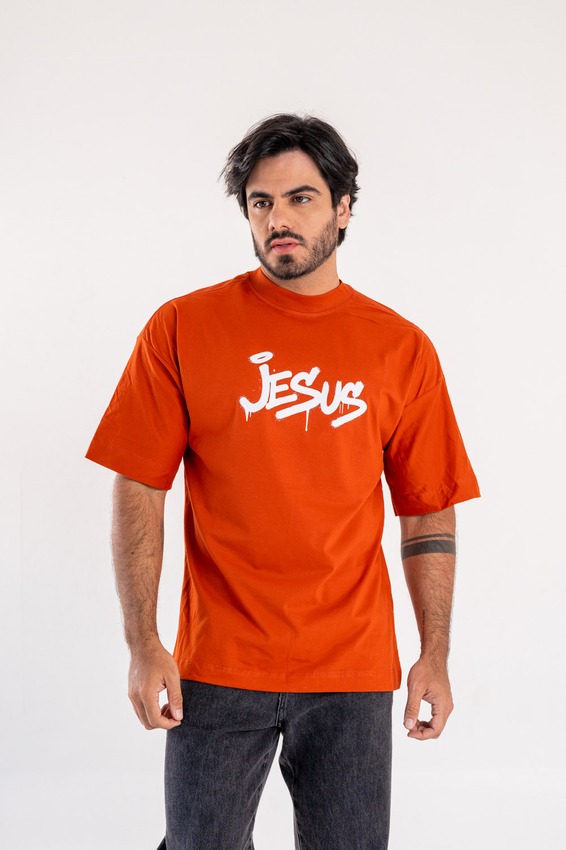 Camiseta Over com modelagem tradicional de camiseta Gola Alta em Ribana Canelada e costura ombro a ombro.
