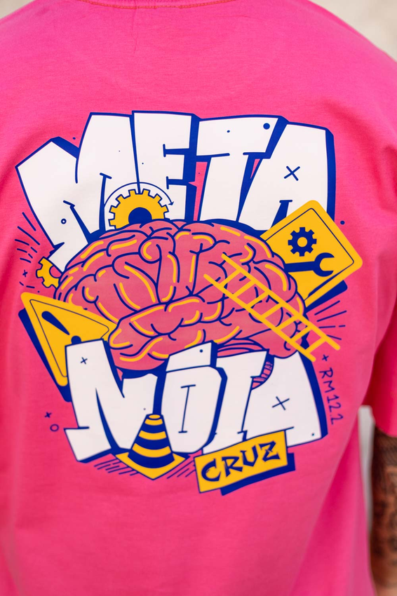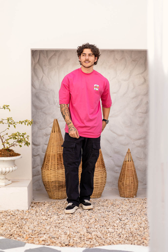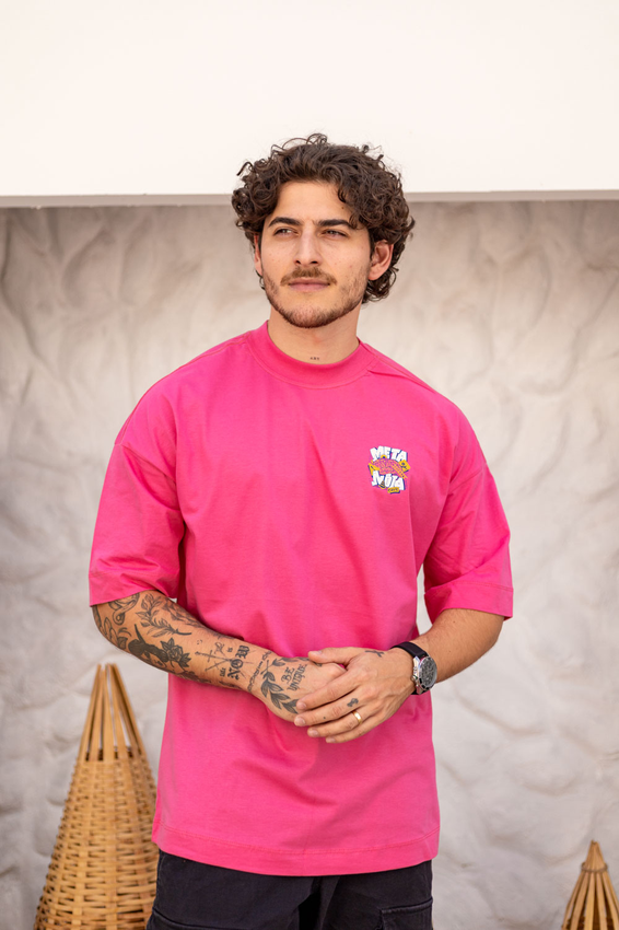 Camiseta Over com modelagem tradicional de camiseta Gola Alta em Ribana Canelada e costura ombro a ombro.