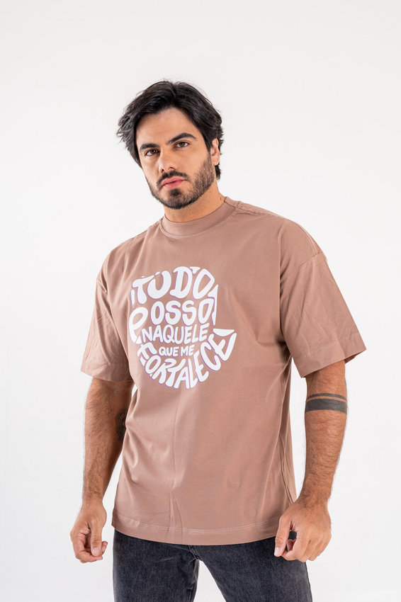 Camiseta Over com modelagem tradicional de camiseta Gola Alta em Ribana Canelada e costura ombro a ombro.