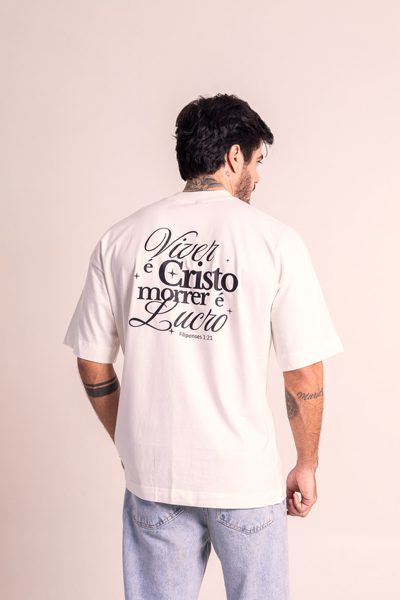 Camiseta Over com modelagem tradicional de camiseta Gola Alta em Ribana Canelada e costura ombro a ombro.