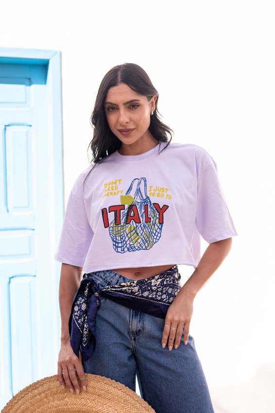 Cropped com modelagem tradicional de camiseta gola'' O''