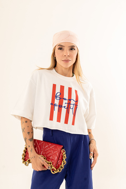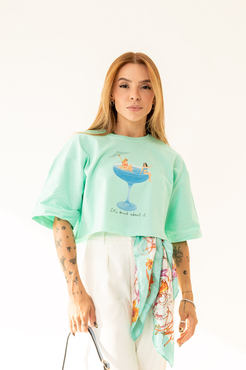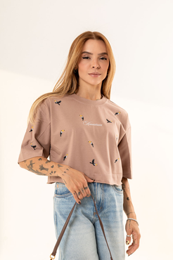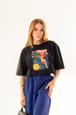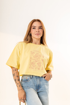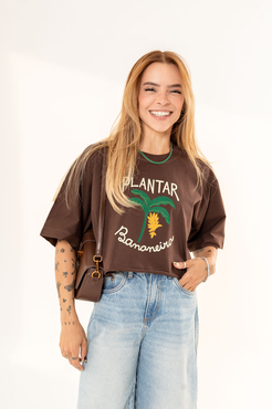Cropped com modelagem tradicional de camiseta gola'' O''
