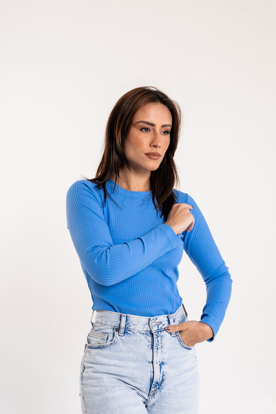 Manga Longa canelada SOHO com modelagem tradicional de gola'' O''