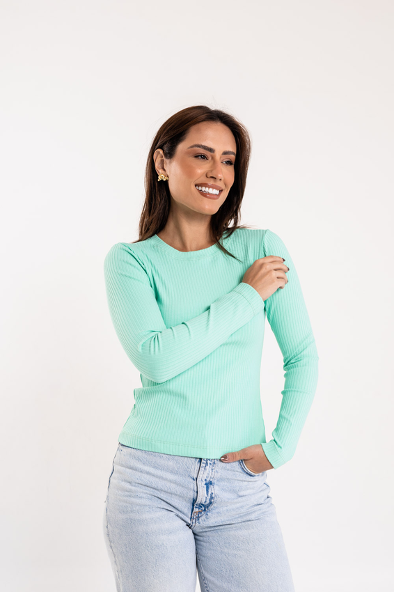 Manga Longa canelada SOHO com modelagem tradicional de gola'' O''