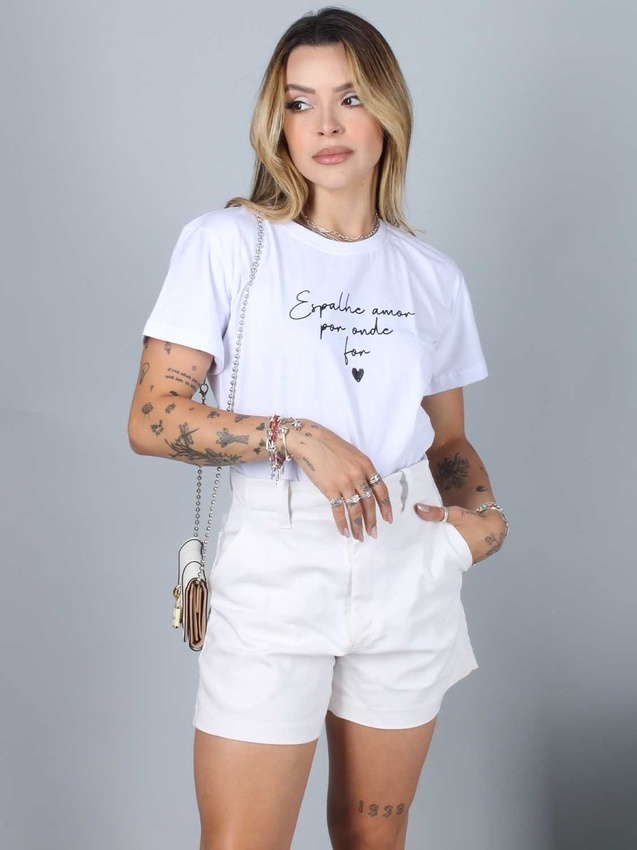 Tshirt com modelagem tradicional de camiseta gola''O'' com ribana e costura ombro a ombro.
