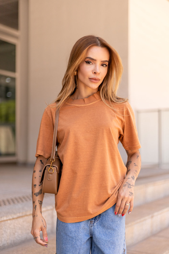 Tshirt Estonada com modelagem tradicional de camiseta gola''O'' com ribana e costura ombro a ombro.