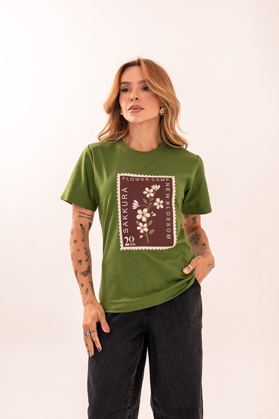 Tshirt com modelagem tradicional de camiseta gola''O'' com Gola em Ribana Canelada e costura ombro a ombro.