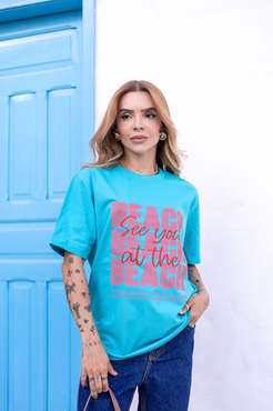 Tshirt com modelagem tradicional de camiseta gola''O'' com ribana e costura ombro a ombro.