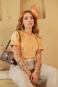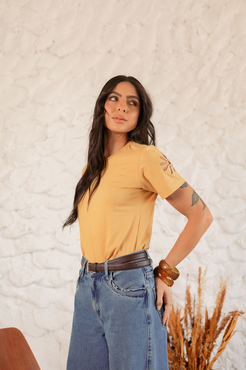 Tshirt com modelagem tradicional de camiseta gola''V'' com ribana e costura ombro a ombro.