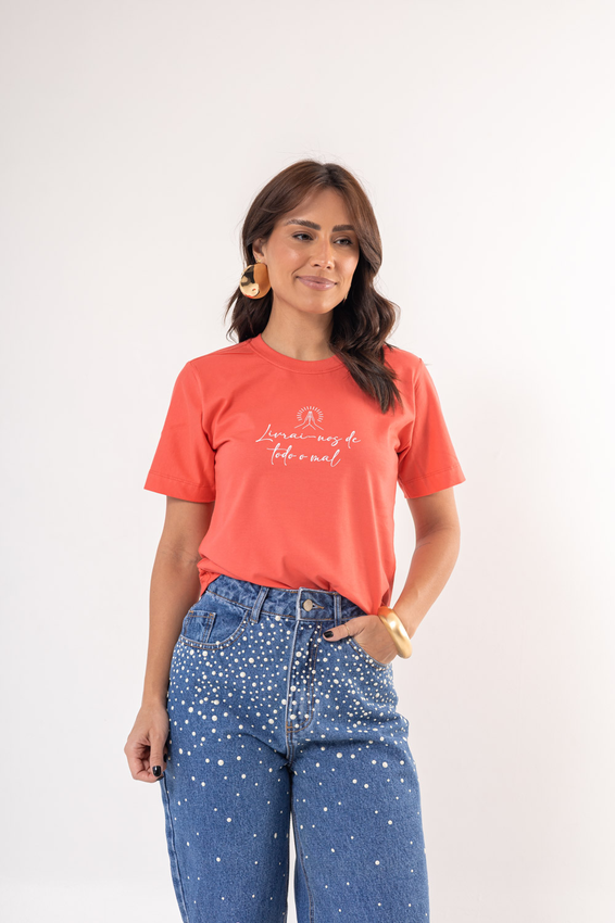 Tshirt com modelagem tradicional de camiseta gola''O'' com Gola em Ribana Canelada e costura ombro a ombro.