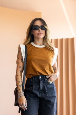 Muscle Tee Bicolor Conhaque Mangas Bege